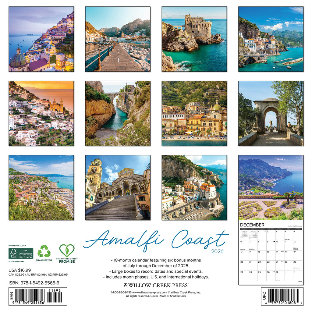 Dimensions (closed): 12"H x 12"WDimensions (open): 24"H x 12"WCalendar Format: Stapled with Large Square GridsCalendar Start Date: January 2026 Sunday Week StartTime Span: 12 month full page gridPaper Source: FSCInk Type: Soy-BasedPackaging: Shrinkwrap - Non RecyclableCreative Artist: Additional Features: