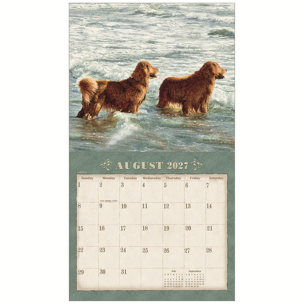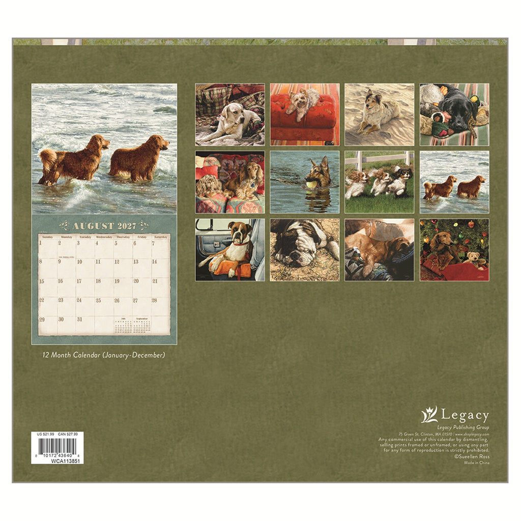 This 2027 Legacy Wall Calendar features your favorite dogs, lovingly and realistically rendered by artist Sueellen Ross. Each 12-month calendar is printed on premium, linen-embossed paper that has a distinctive, luxurious feel to it, and comes in a protective sleeve. The date pad is uniquely designed for each calendar title to complement the artwork. The last page contains a 2-year calendar (2027/2028) and space for notes. Brass gusset on front cover for added durability.