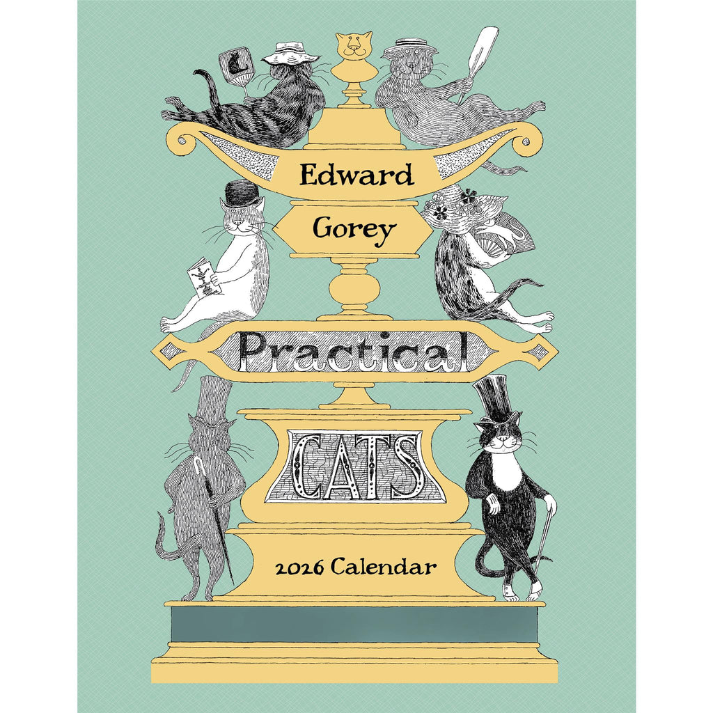 Dimensions (closed): 7.5"H x 6"WDimensions (open): 15"H x 6"WCalendar Format: Stapled with Medium Square GridsCalendar Start Date: January 2026 Sunday Week StartTime Span: 12 month full page gridPaper Source: FSCInk Type: Soy-BasedPackaging: Plastic Free - Single Wafer SealCreative Artist: Edward Gorey Additional Features: