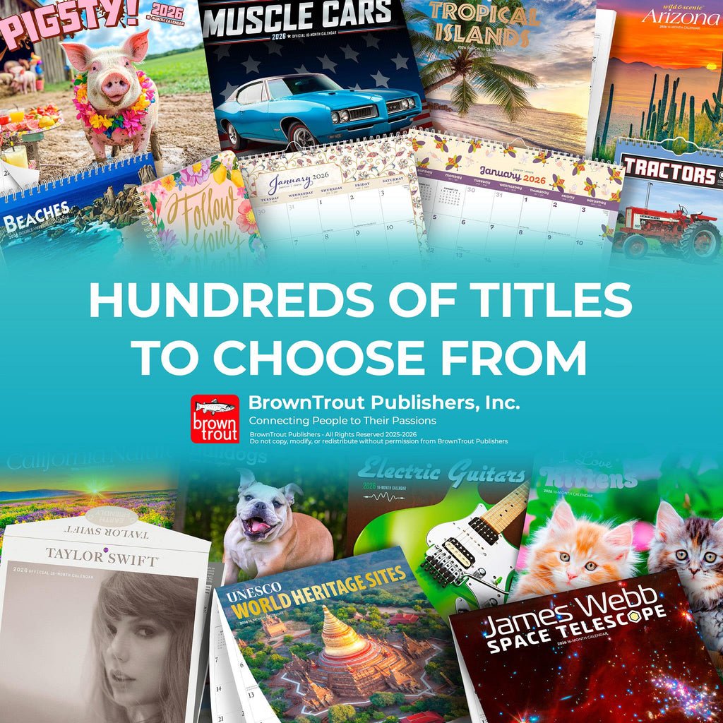 Dimensions (closed): 12"H x 12"WDimensions (open): 24"H x 12"WCalendar Format: Stapled with Medium Square GridsCalendar Start Date: January 2026 Sunday Week StartTime Span: 12 month full page gridPaper Source: FSCInk Type: Soy-BasedPackaging: Plastic Free - Single Wafer SealCreative Artist: Additional Features: