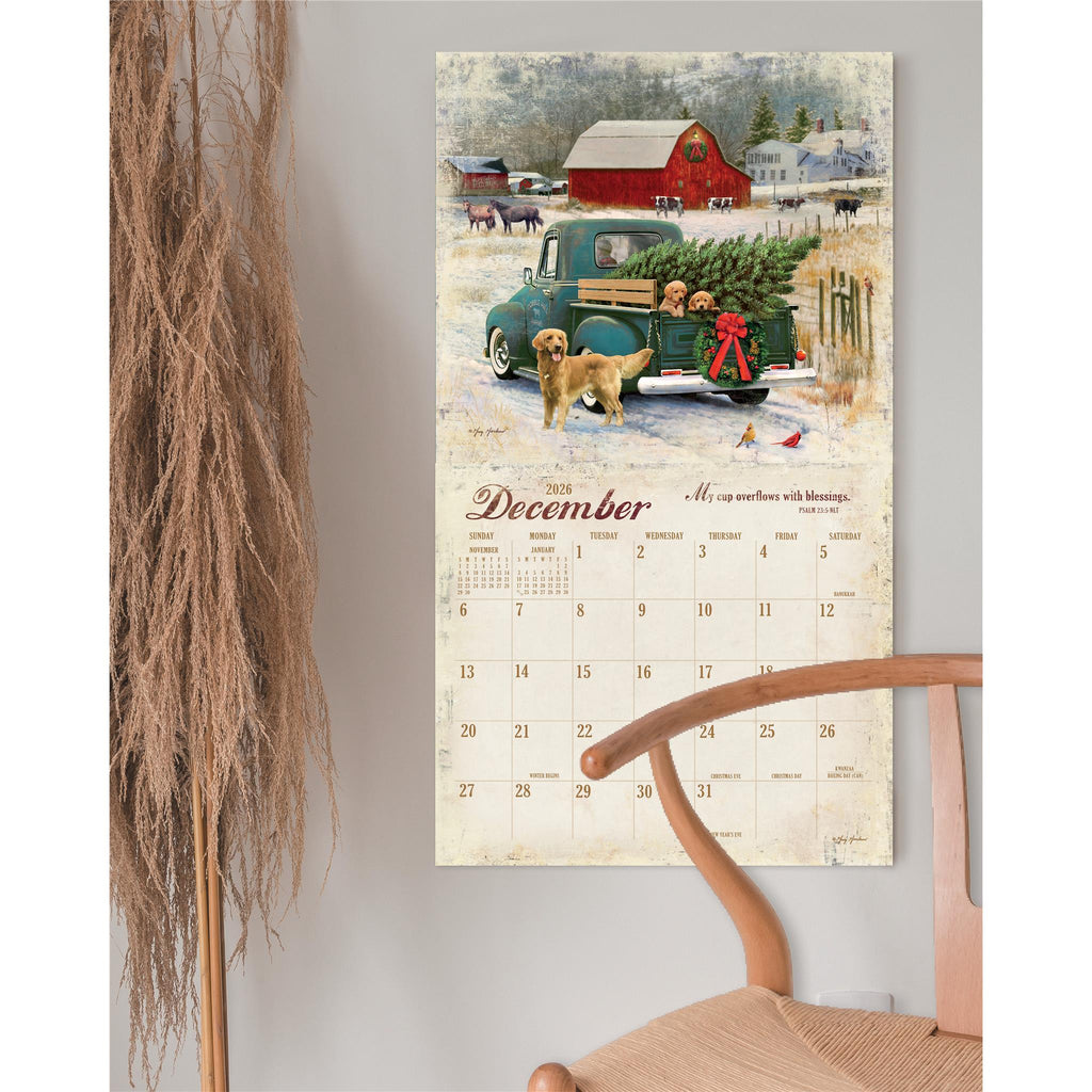 This 2026 Legacy Wall Calendar features the paintings of American artist, Greg Giordano that celebrates our love for trucks, tractors, antique cars and those places we hold close in our hearts, prayers and memories, complete with Scripture verses. Each 12-month calendar is printed on premium, linen-embossed paper that has a distinctive, luxurious feel to it, and comes in a protective sleeve. The date pad is uniquely designed for each calendar title to complement the artwork. The last page contains a 2-year calendar (2026/2027) and space for notes. Brass gusset on front cover for added durability.