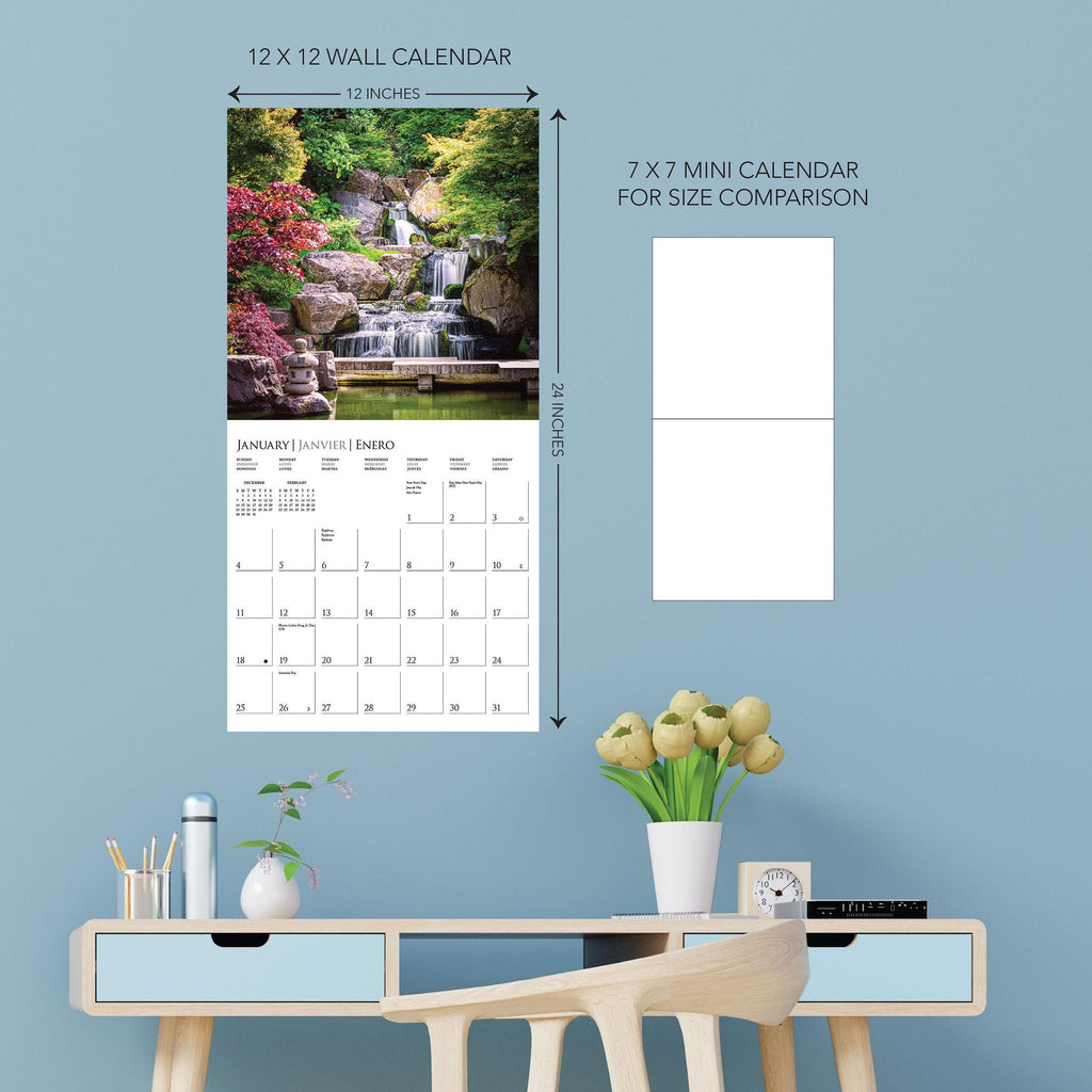 Dimensions (closed): 11.75"H x 11.8"WDimensions (open): 23.5"H x 11.75"WCalendar Format: Stapled with Small Square GridsCalendar Start Date: January 2026 Sunday Week StartTime Span: 12 month full page gridPaper Source: FSCInk Type: Soy-BasedPackaging: Shrinkwrap - Non RecyclableCreative Artist: Additional Features: