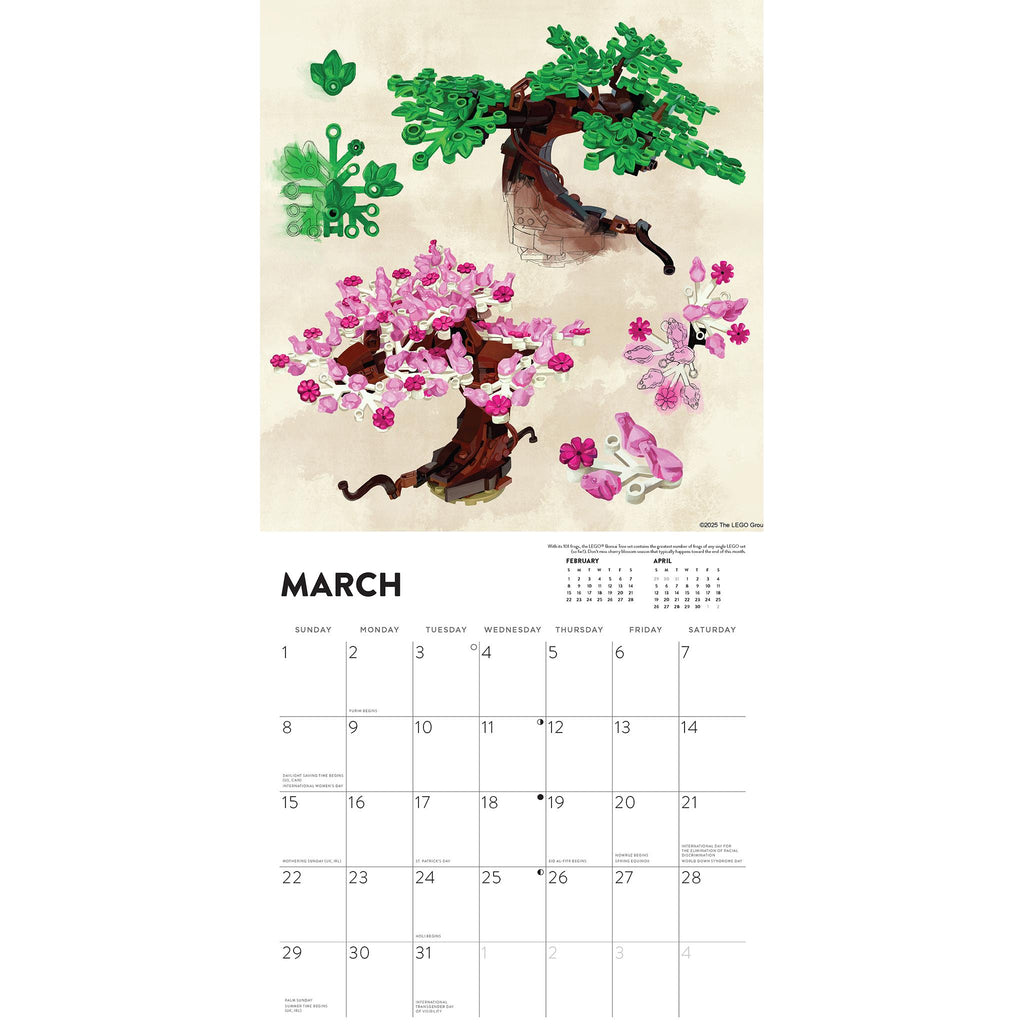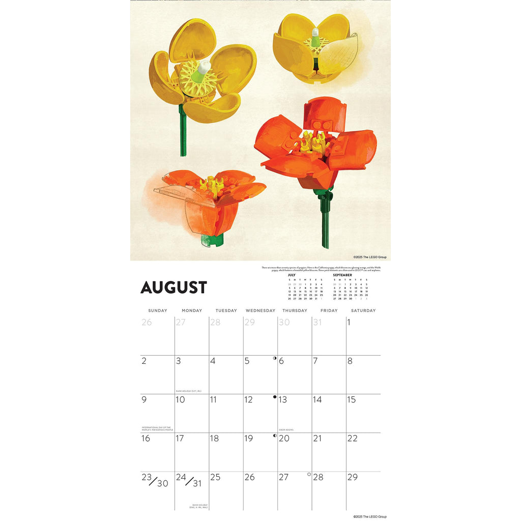 Enjoy twelve months of LEGO(R) brick-built blooms! This charming wall calendar features beautiful flowers, unique plants, and colorful bouquets from the bestselling LEGO(R) Botanical sets. Capturing the boundless creativity of the LEGO(R) brand, this calendar will delight year-round with stunning hand-drawn illustrations of LEGO flowers and plants. Fill your year with lovely LEGO botanicals the whole family will enjoy! LEGO, the LEGO logo, and the Brick and Knob configurations are trademarks of the LEGO Group. (C)2025 The LEGO Group. All rights reserved.FEATURING LEGO(R) BOTANICALS: Every month highlights a stunning LEGO bloom, succulent, or plant-from garden varietals to the exquisitely exotic. Hand-drawn bricks and elements come together to create stunning images inspired by the bestselling LEGO(R) Botanical sets. FUN THROUGHOUT THE YEAR: LEGO fans of all ages can proudly display their love of the LEGO brand. If you love the LEGO Botanical sets, you will love this wall calendar.A BRAND YOU LOVE AND TRUST: For decades, the LEGO brand has inspired billions of people to stretch the limits of their imagination and explore the power of play.100% PLASTIC FREE CALENDAR: This calendar has no single use plastic shrink wrap. Before use, the pages are held together with a paper removable sticker and protective paper packaging.