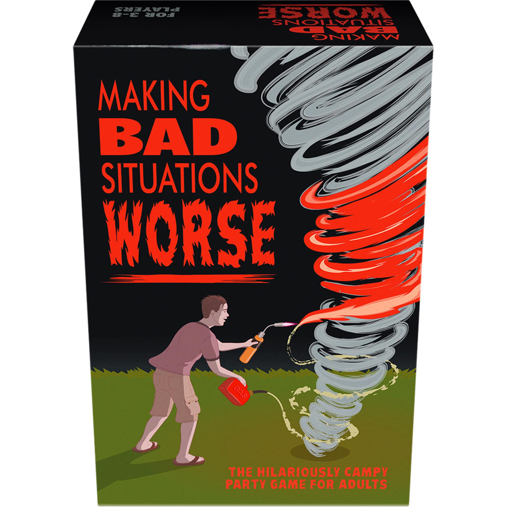 The adult party game where you try to submit the worst reactions to bad situations. Roll the die to select and read a bad situation, then ask the other players how to make it worse. They submit answers from the Make It Worse cards in their hands of 7 cards each. Read the answers aloud and award a point to the player who made the bad situation the worst.