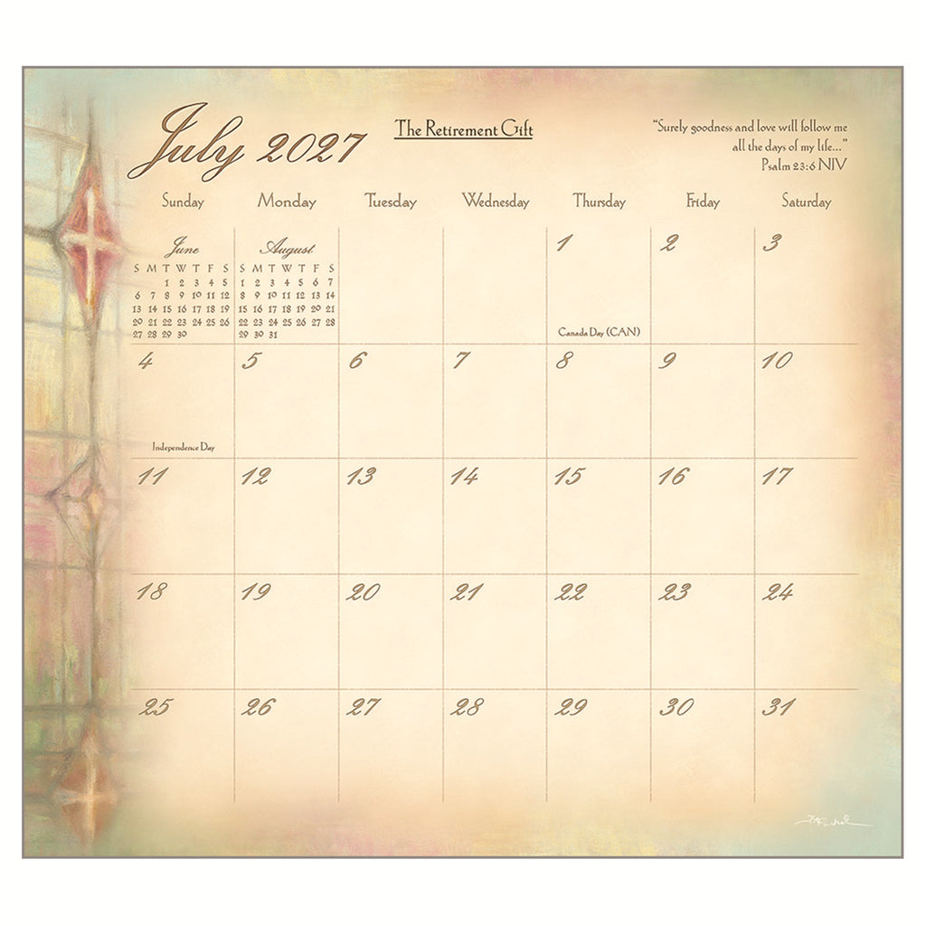 This 2027 Legacy Wall Calendar features beloved "romantic realistic" art by Kathy Fincher that perfectly captures the innocence of youth featuring pastel paintings of angelic children paired with inspiring quotes from Scripture. Each 12-month calendar is printed on premium, linen-embossed paper that has a distinctive, luxurious feel to it, and comes in a protective sleeve. The date pad is uniquely designed for each calendar title to complement the artwork. The last page contains a 2-year calendar (2027/2028) and space for notes. Brass gusset on front cover for added durability.