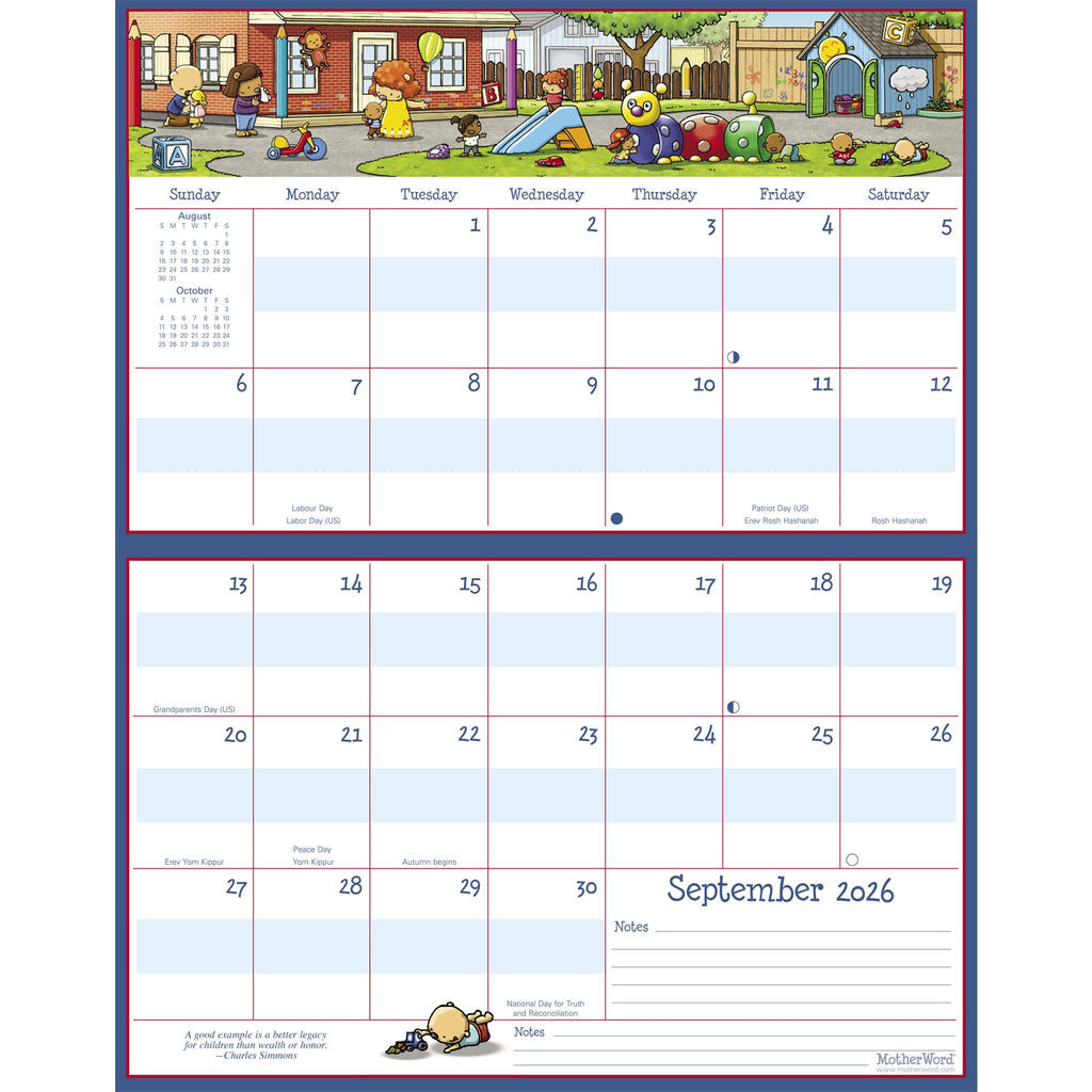Dimensions (closed): 9.6"H x 15"WDimensions (open): 19"H x 15"WCalendar Format: Stapled with Medium Rectangle GridsCalendar Start Date: September 2025 Sunday Week StartTime Span: 16 month full page gridPaper Source: Non-FSCInk Type: Soy-BasedPackaging: Shrinkwrap - Non RecyclableCreative Artist: Scott Lucescu Additional Features: