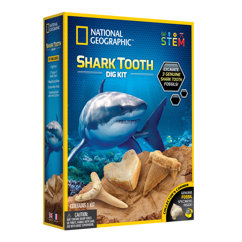 National Geographic’s Shark Tooth Dig Kit lets children dig up and explore fossils from three different species of shark. With a full-colour learning guide full of amazing shark facts and pictures, kids will have a blast while they identify the teeth of the Sand Tiger, Otodus, and Crow Sharks, and learn all about what makes sharks the ocean’s most feared predators. This dig kit makes a great gift for any child ages 6-15 years with an interest in sharks, fossils, or science. With 3 amazing fossils to uncover, children can start an impressive fossil collection that they can show their friends. A favourite among both boys and girls!
