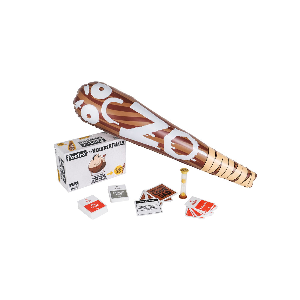 Poetry for Neanderthals is a hilarious party game from Exploding Kittens. A competitive word-guessing game where you must speak good or get hit with stick. Players earn points by getting their team to guess secret words, but there’s a catch: you can only use one-syllable words to give clues. If you slip up and use big fancy words, your opponents get to bonk you with the inflatable “NO!” stick! Designed for 2+ players ages 7 and up, this fast-paced game tests your creativity, communication, and ability to think like a caveman. Each round is filled with laughter, grunts, and wild miscommunication as players try to “speak dumb” to win smart. Easy to learn and endlessly funny, Poetry for Neanderthals is perfect for family game nights, parties, and anyone who loves a good laugh.