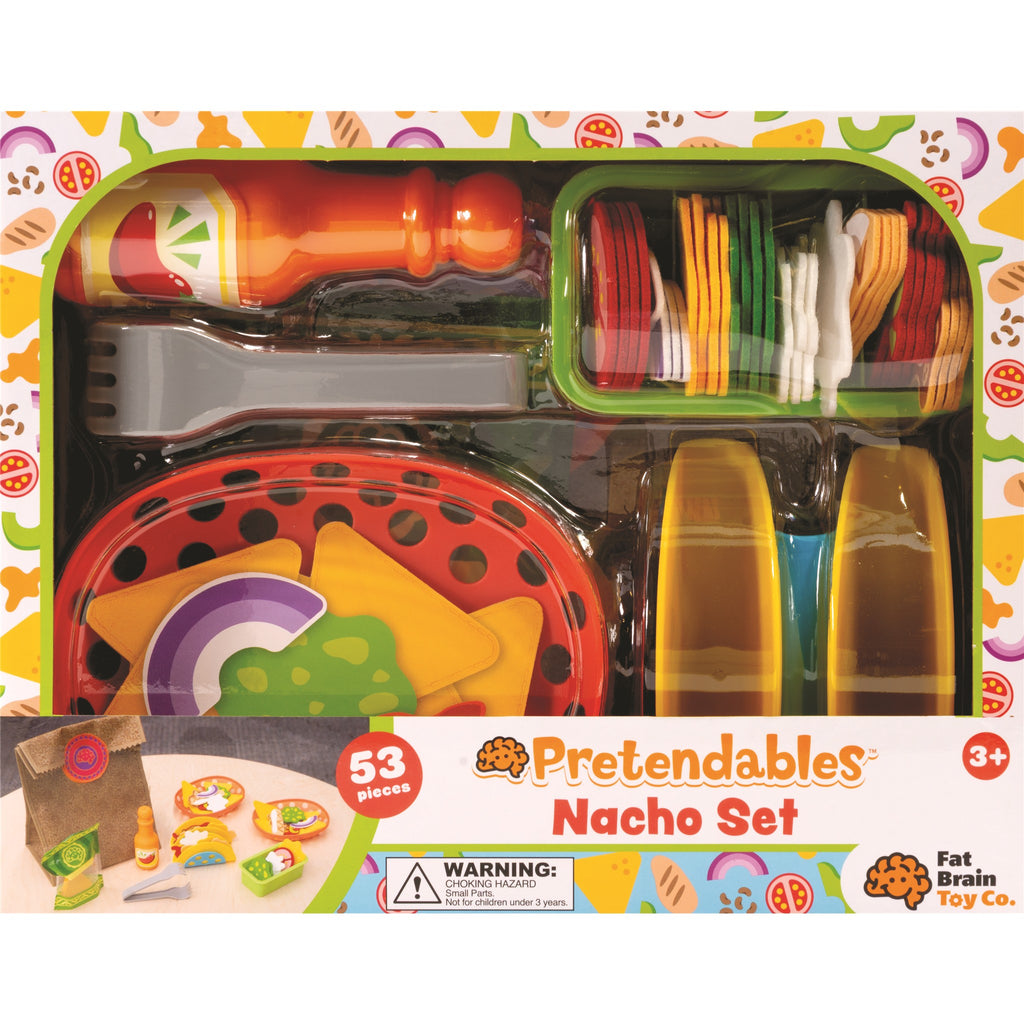 Every day is Taco Tuesday! Get creative with Pretendables Nacho Set. All ingredients are made of felt, and includes a takeout bag, a variety of different ingredients, and a divided storage tray. High-quality materials make for an exceptional pretend-play experience.