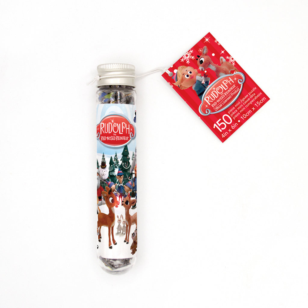 This Rudolph Cast Micro Jigsaw Puzzle In A Tube makes a perfect stocking stuffer! Packed in a plastic test tube, this small 4 x 6-inch puzzle can be completed in a single, 1-2 hour sitting. The puzzle art features an illustrated image of Rudolph and his friends.Other Christmas Classics include Frosty, Charlie Brown, The Grinch, Christmas Vacation, Elf and A Christmas Story.