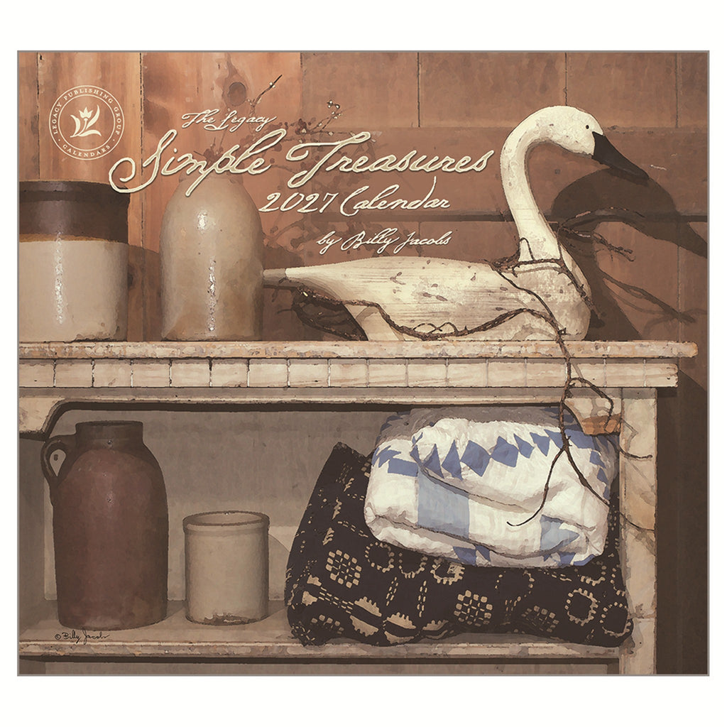 This 2027 Legacy Wall Calendar features the stunningly realistic still-life portraits of country folk artist Billy Jacobs. Each 12-month calendar is printed on premium, linen-embossed paper that has a distinctive, luxurious feel to it, and comes in a protective sleeve. The date pad is uniquely designed for each calendar title to complement the artwork. The last page contains a 2-year calendar (2027/2028) and space for notes. Brass gusset on front cover for added durability.