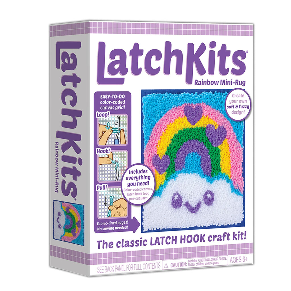 The classic latch hook craft kit is back! LatchKits are a fun and easy-to-learn craft—just loop, hook, and pull! Everything you need is included: the handy latch hook tool, pre-cut yarn and color-coded, easy-to-follow canvas make getting started on your project a snap. The sturdy canvas features fabric-lined edges and hanging loops to create your very own soft and fuzzy design that’s ready to hang on your wall or use as a mini-rug—it’s a great anytime project!