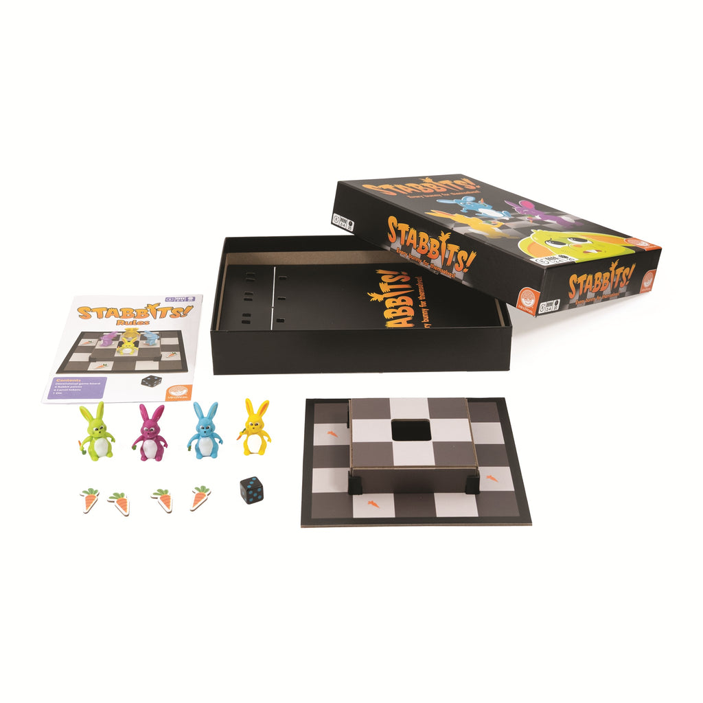 Stabbits is a delightfully devious board game that turns cuddly rabbits into cunning assassins in a fast-paced race for survival. Combines strategic movement, surprise attacks, and a dash of luck. Players take on the role of sneaky rabbits armed with lethal carrots, aiming to outmaneuver their opponents and become the last bunny standing. The twist? Attacks can only be made from behind, so positioning and timing are crucial.