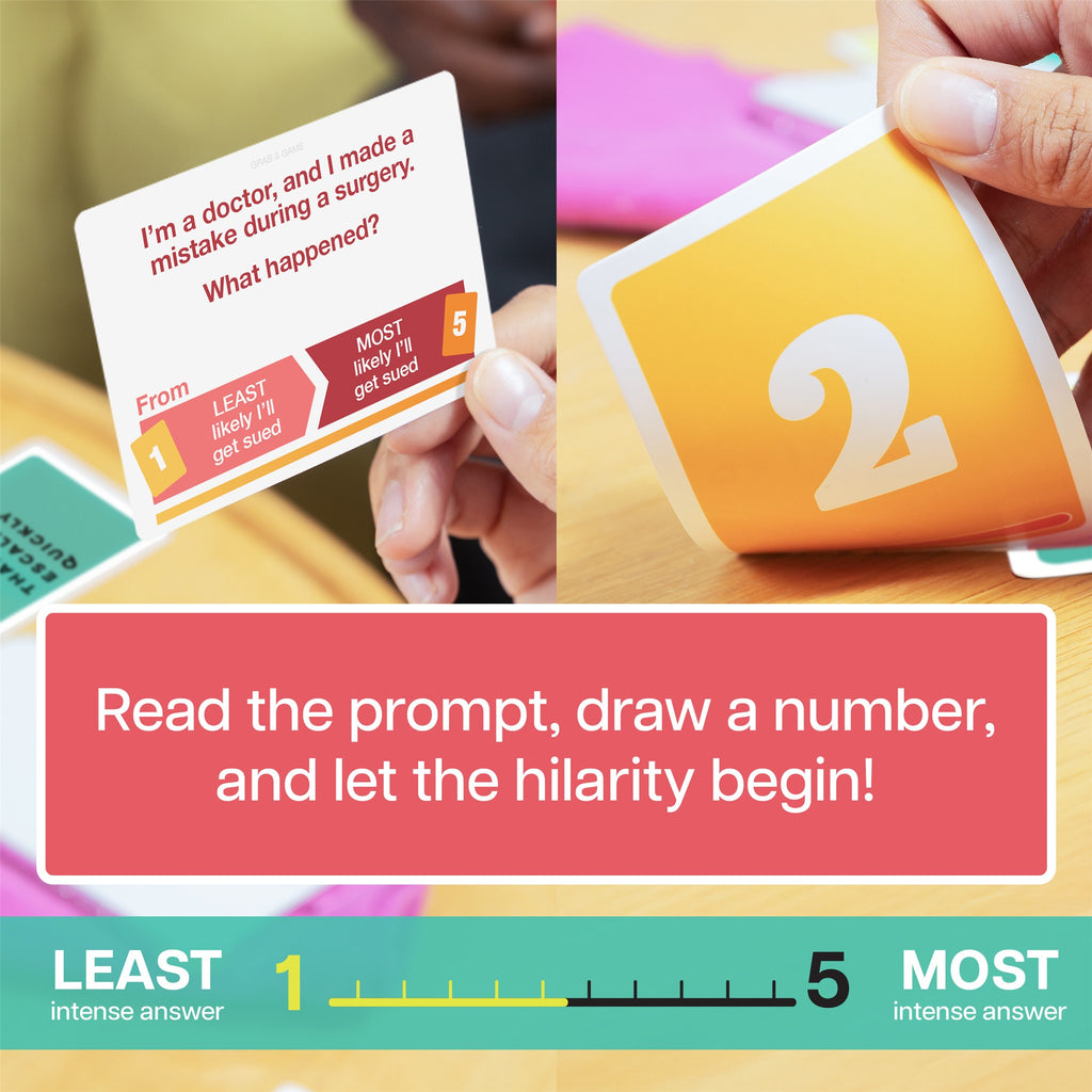 Take your game night to absurd heights with That Escalated Quickly Grab & Game - a fast, travel‑friendly party card game from Exploding Kittens. Players draw a secret number, answer a wild prompt with intensity matching their number (e.g., “1 = bumblebee”, “5 = rampaging mecha”) and then work together to arrange all responses in the correct order. Think silly, think surprising, think “did my teammate really just pick that?” Designed for 3-5 players aged 10+ with about 15 minutes per round, this cooperative game thrives on shared creativity, laughter and absurd comparisons. Whether you’re stuck on a road trip or spicing up family night, that Escalated Quickly Grab & Game delivers a compact, hilarious experience you can grab and play anytime.