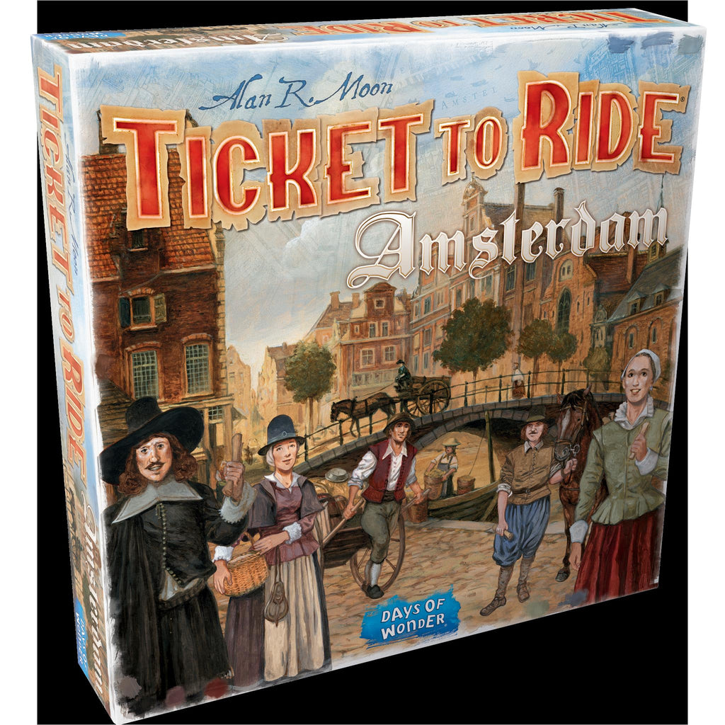 Welcome to the 17th Century. Players are in the middle of the Gouden Eeuw, the Dutch Golden Age. This is an elegantly simple version of Ticket to Ride where players race one another, this time in cart, to claim the most lucrative commercial routes, fulfill rewarding trade contracts, and collect precious merchandise from the bustling streets of this legendary city. Ticket to Ride: Amsterdam is fast-paced, easy to learn in three minutes, and extremely portable. It's perfect for new players and veterans alike.