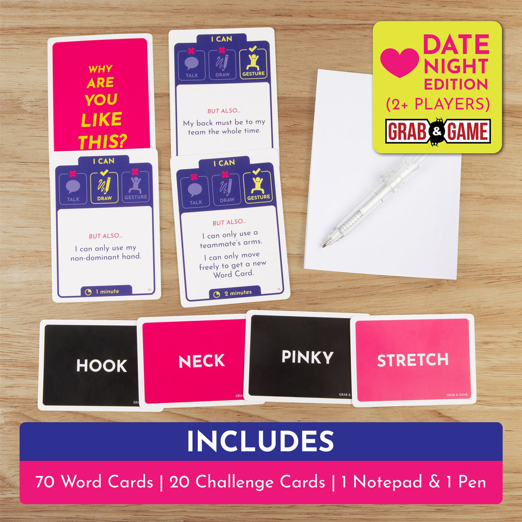 Make every evening special with the Date Night Edition from Exploding Kittens, the ultimate card game for couples aged 14 and up. Designed to spark laughter, creativity, and connection, this game challenges you to talk, draw, or act out fun prompts that lead to unforgettable moments together. Perfect for date night at home, game nights, or cozy evenings, it encourages playful competition and meaningful conversations that strengthen your bond. With a variety of entertaining challenges, each round brings surprises, laughter, and excitement. Easy to learn and quick to play, this interactive couples game is ideal for breaking the routine and adding fun to your relationship. Whether you’re looking for romantic activities for couples or a lively way to connect, the Date Night Edition is your go-to game for love, laughter, and lasting memories.