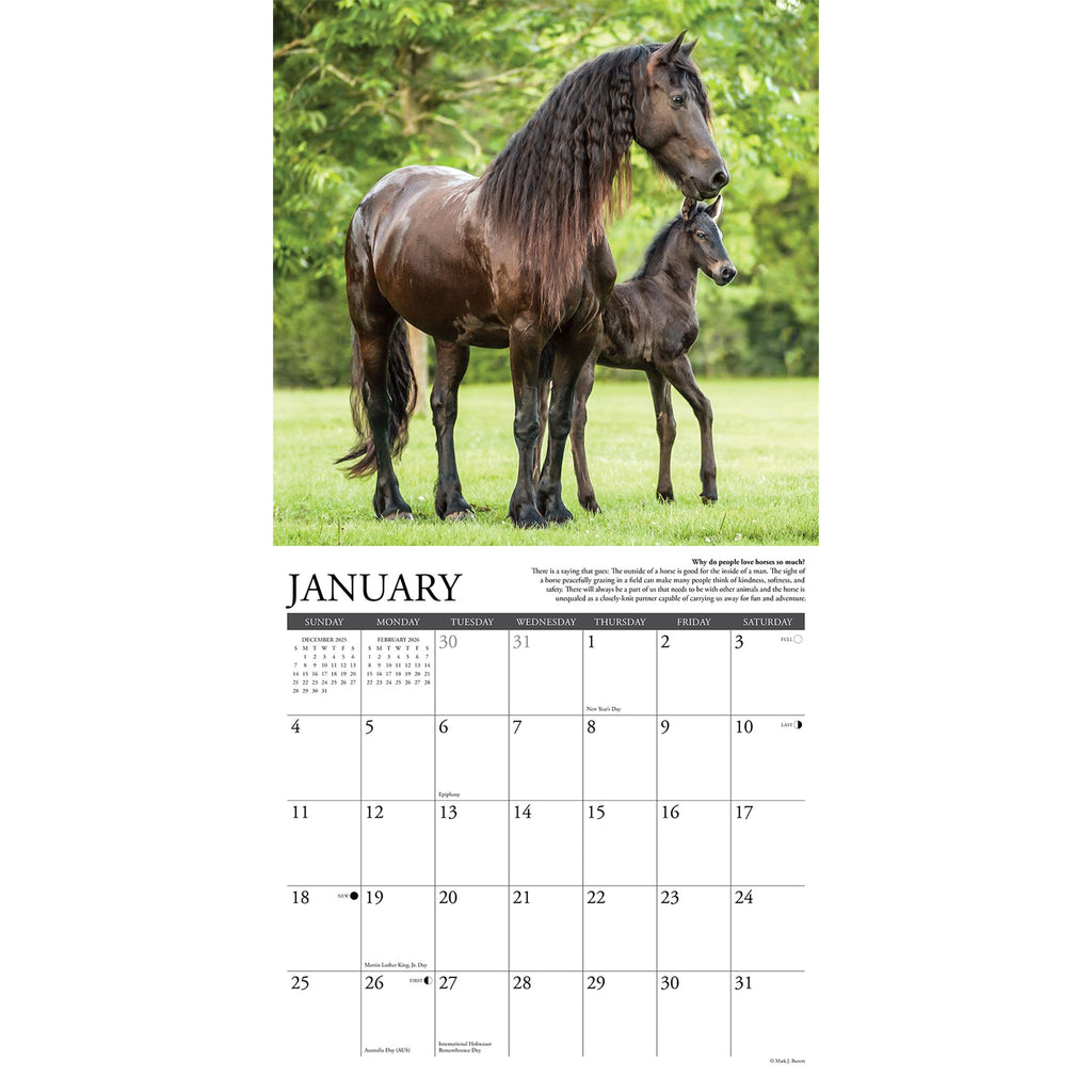 Twelve curious equine behaviors illustrated with bright, full color photographs and explained in descriptive text. Stay organized in the upcoming year with a Willow Creek Press 2026 12" x 12" Wall Calendar. This calendar features large grids for easy notation of dates and events, helping you stay efficient and on top of your commitments. Let this calendar guide you to a more organized, successful and fulfilled year ahead. PERFECT GIFT - Look no further for the perfect gift for any special occasion. Make someone's year extra special with one of our 2026 Wall Calendars. Our calendars are the perfect choice for your friends or family, even for those difficult to buy for. PLANNING - Stay organized and inspired throughout the year. Ideal calendar for taking notes, recording dates to remember, tracking appointments and assisting in family activity organization. INCREDIBLE IMAGES - Crisp, detailed full-color images every month providing Wall art for Home, Office or School. LARGE GRIDS - 12" x 12" format, with large daily blocks providing ample writing room. SUPERIOR QUALITY - High quality paper stock that lays flat when hanging and offers crisp, bright colors. MONTHLY OVERVIEW - Plan ahead or look back with grids of the upcoming and previous months at a glance. ECO FRIENDLY - Willow Creek Press is committed to eco-friendly efforts to make our products more sustainable, our 2026 12" x 12" wall calendars are printed with soy-based inks on high-quality FSC certified paper for smooth writing. DATE RANGE - 2026 Wall Calendar with 6 bonus months from July-December 2025. BONUS FEATURES -US and International holidays and moon phases (CST) noted on each month for easy tracking. This year can be your most successful yet, with this beautiful and brilliant wall calendar. Learn how to become a highly effective person, one month at a time!"