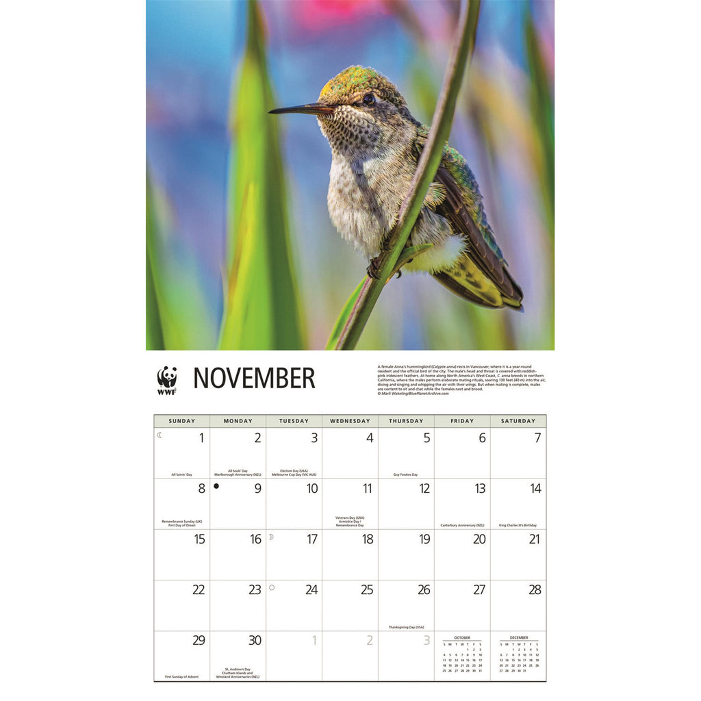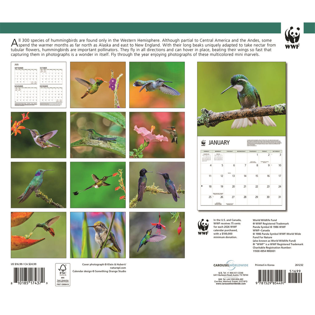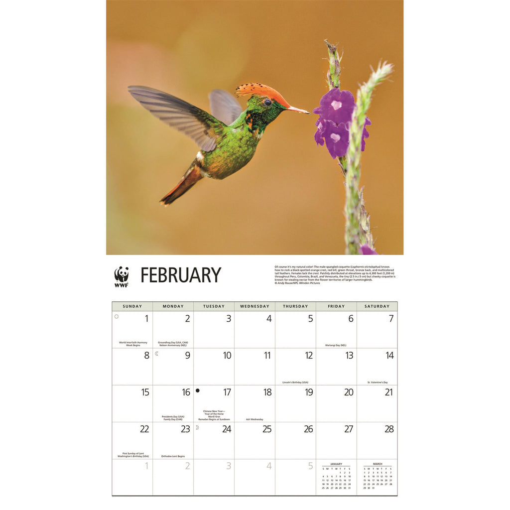 Step into the vibrant world of hummingbirds with the Hummingbirds WWF Wall Calendar, exclusively available at Calendars.com! These tiny birds, some weighing less than a dime, captivate us with their brilliant colors and speedy flight. Our calendar showcases these beautiful creatures mid-flight, their stunning plumage on full display for you to enjoy all year round.